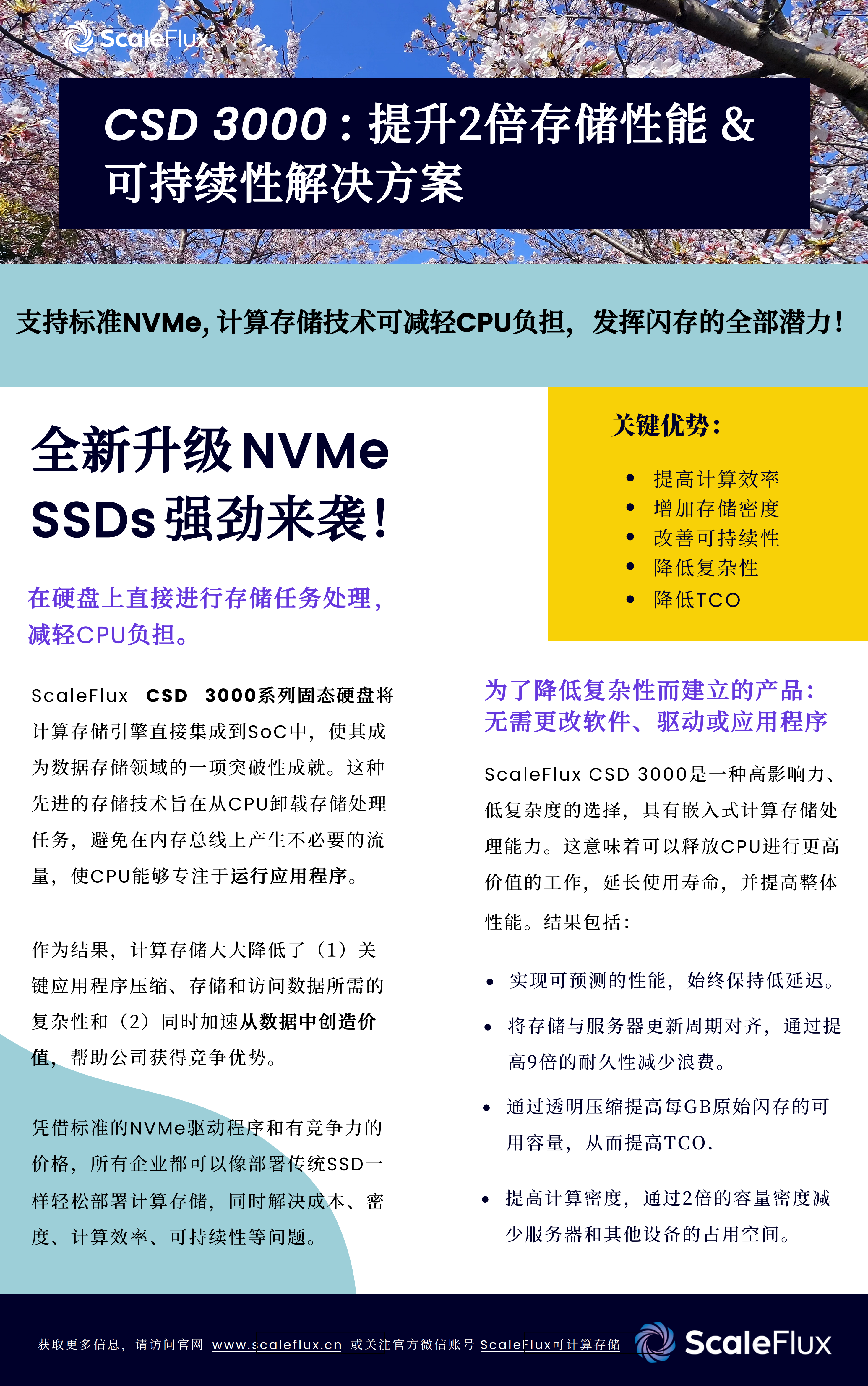 CSD 3000: 提升2倍存储性能 &可持续性解决方案